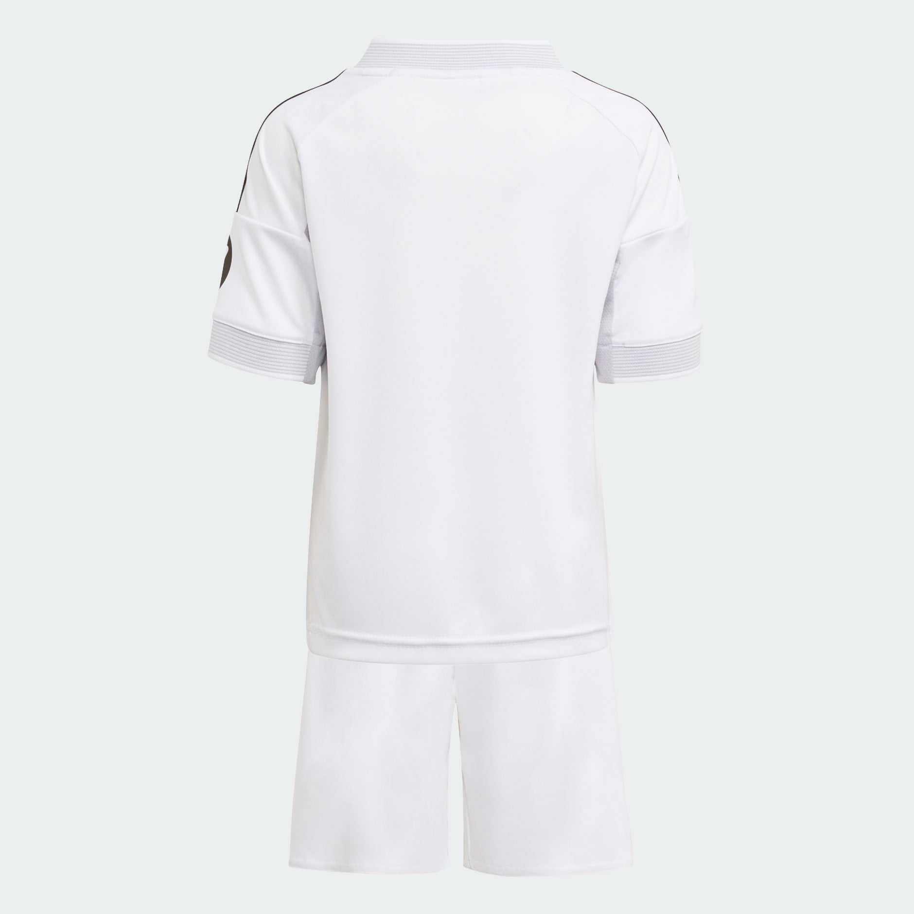The Real Madrid 25/26 Youth Home Full Kit is designed to inspire young fans with its classic style and comfort. The home jersey features the club's traditional white color, adorned with the iconic Real Madrid crest, highlighting the team's pride and legacy. Crafted from breathable, lightweight fabric, it ensures maximum comfort and freedom of movement during play. The kit includes matching shorts and socks, all designed with advanced moisture-wicking technology to keep young athletes dry and focused. Perfect for both game day and casual wear, this full kit is an essential for every young Real Madrid supporter.